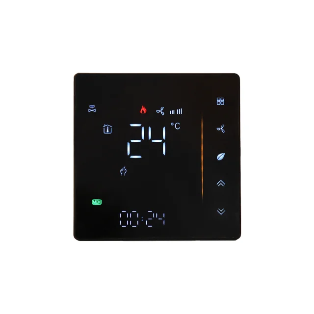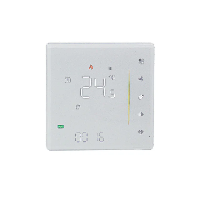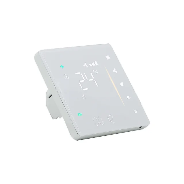 ترموستات هوشمند مدل Beca-006 ویژهٔ فن کوئل، یکی از گزینه های پیشرفته و کارآمد برای کنترل دقیق دمای محیط در خانه های هوشمند به شمار میرود. این دستگاه از طریق ارتباط Wi-Fi، امکان راه اندازی چیلرهای سقفی سه سرعته را فراهم میکند و همچنین قابلیت کنترل روشن و خاموش شدن شیرهای برقی فن کوئل را نیز در اختیار کاربر قرار میدهد.با اتصال مستقیم به مودم خانگی از طریق شبکهٔ Wi-Fi، این ترموستات به شما اجازه میدهد تا حتی از راه دور نیز دمای محیط را با دقت بالا تنظیم کنید. اپلیکیشن Tuya Smart امکان مدیریت تنظیمات دما را فراهم میسازد و به شما اجازه میدهد تا از قابلیت هایی مانند زمانبندی و تعریف سناریو برای بهینه سازی مصرف انرژی و افزایش آسایش بهرهمند شوید.