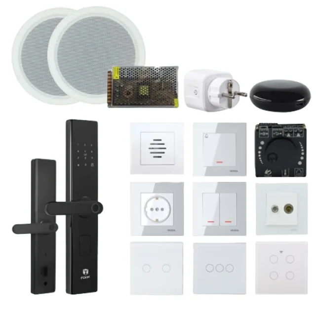 مجموعه کامل خانه هوشمند سه خواب، تجربه ای بینظیر از زندگی لوکس و هوشمند را ارائه میدهد و تقریباً هر چیزی را در خانه شما هوشمند میسازد. با استفاده از این پکیج، کنترل کامل چراغها، سیستم های سرمایش و گرمایش (مثل کولر اسپیلت)، امکانات امنیتی خانه و حتی بلندگوها را از طریق اینترنت و با گوشی خود به دست میآورید. این پکیج شامل کلیدهای هوشمند برای نورپردازی، دستگیره های هوشمند درب و یک ریموت هوشمند مخصوص اسپیلت است که به دما و رطوبت حساسیت نشان میدهد. اما این کنترلر IR فقط برای کولر نیست! شما میتوانید تمام وسایلی که با کنترل های معمولی (مادون قرمز) کار میکنند را میتوانید هوشمند کنید. همچنین، کلیدهای هوشمندی نیز در این مجموعه گنجانده شده است. نصب و راهاندازی تمام اجزای این پکیج به سادگی انجام میشود و نیازی به هیچگونه تجهیزات جانبی نخواهید داشت. کلیدهای هوشمند این پکیج در رنگ های سفید و مشکی موجود هستند و این امکان را دارید که در صورت تمایل، بخشهای مختلف آن را ارتقا دهید..