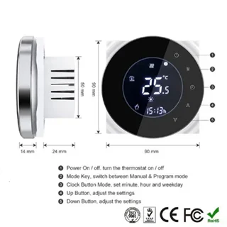 قابلیت اتصال به آبگرمکن و پشتیبانی از ارتباط Wi-Fi، باعث شده این ترموستات به راهکاری جامع برای کنترل هوشمند دما در خانه یا محیط کار تبدیل شود. با استفاده از این امکانات، میتوانید محیطی راحت، هوشمند و کممصرف تر ایجاد کنید.