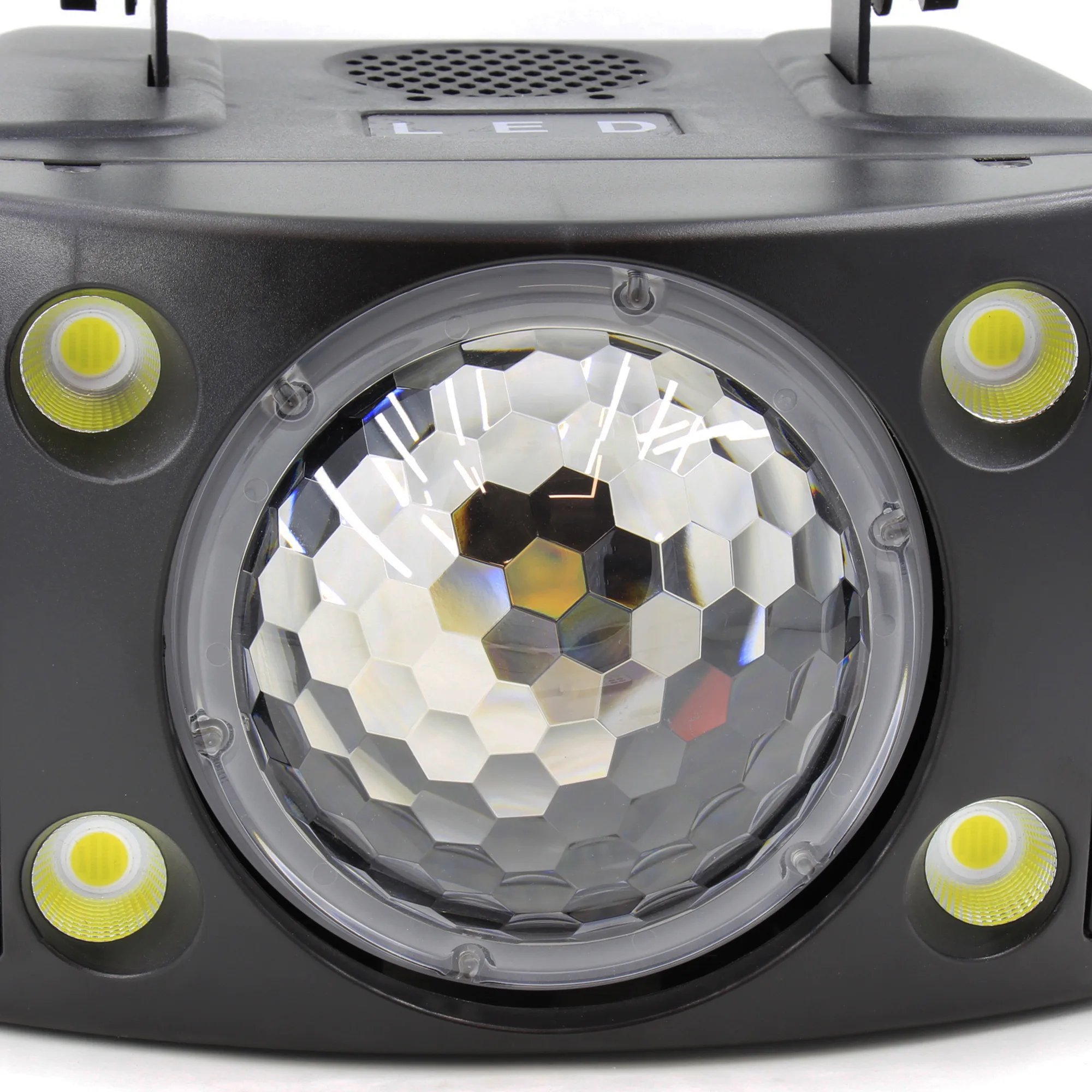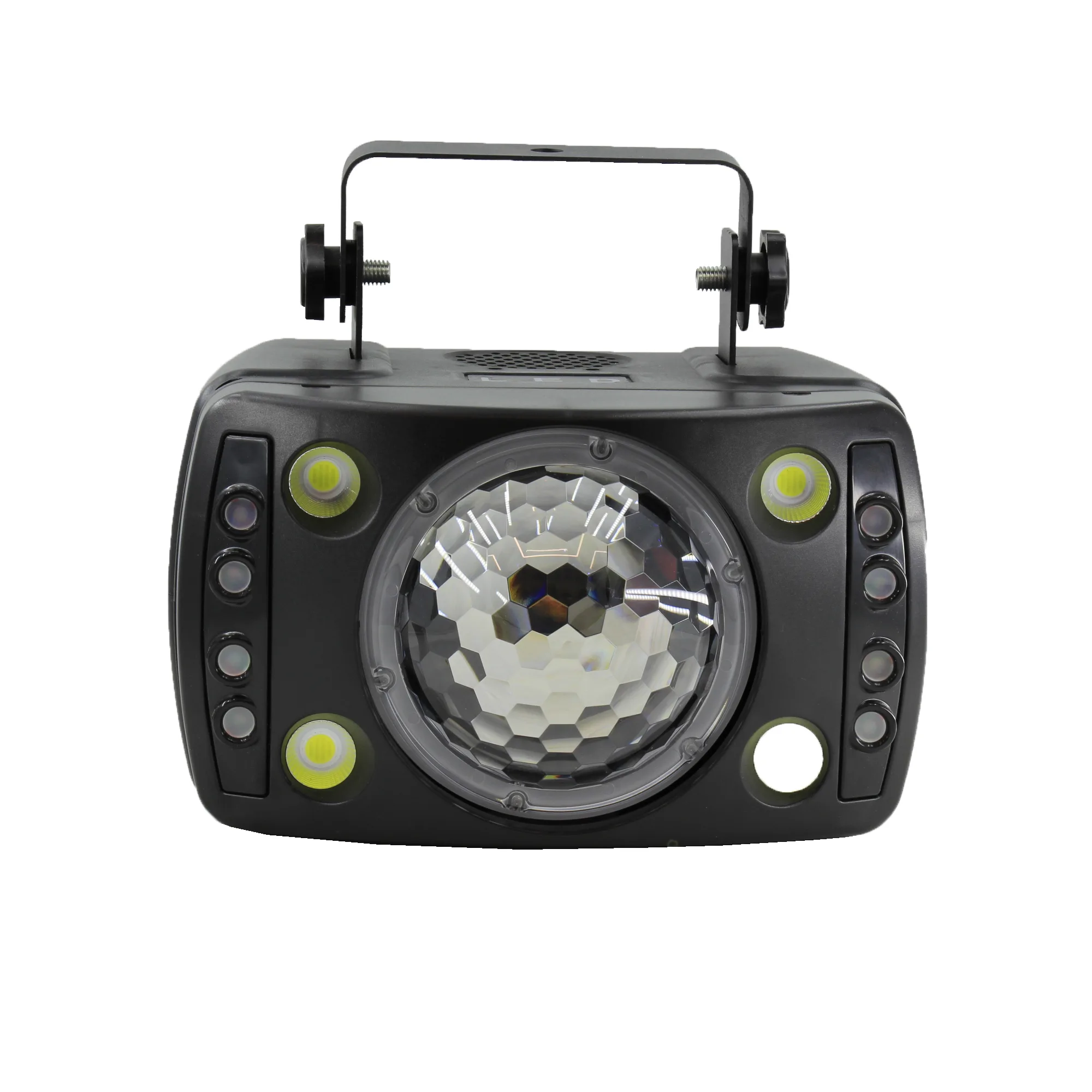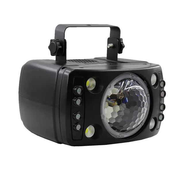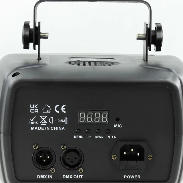 این دستگاه یک سیستم نورپردازی پیشرفته و چند منظوره است که مجموعهای از افکت های چشمگیر را در خود جای داده است. ترکیب رقص نور بلک لایت، گوی متحرک با چهار رنگ قابل ترکیب، فلشر قدرتمند و افکت بارانی ویژه جلوهای منحصر به فرد و تماشایی ایجاد میکند. تمامی بخش های این مجموعه به صورت مستقل قابل تنظیم هستند؛ از سرعت چشمک زدن و نحوه ی ترکیب رنگها گرفته تا الگوی حرکتی نورها. نتیجهی نهایی زمانی شگفت انگیز تر میشود که بخار به فضا افزوده شود؛ جایی که لوله های نوری در میان مه شکل گرفته و با رنگ های متنوع به رقص درمیآیند و تصویری خیره کننده خلق میکنند. این سیستم علاوه بر قابلیت اتصال و همگام سازی با سایر تجهیزات نورپردازی، از حالت حساس به صدا نیز پشتیبانی میکند تا نورها با ریتم موسیقی هماهنگ شوند و تجربهای پویا و هیجان انگیز رقم بخورد.
