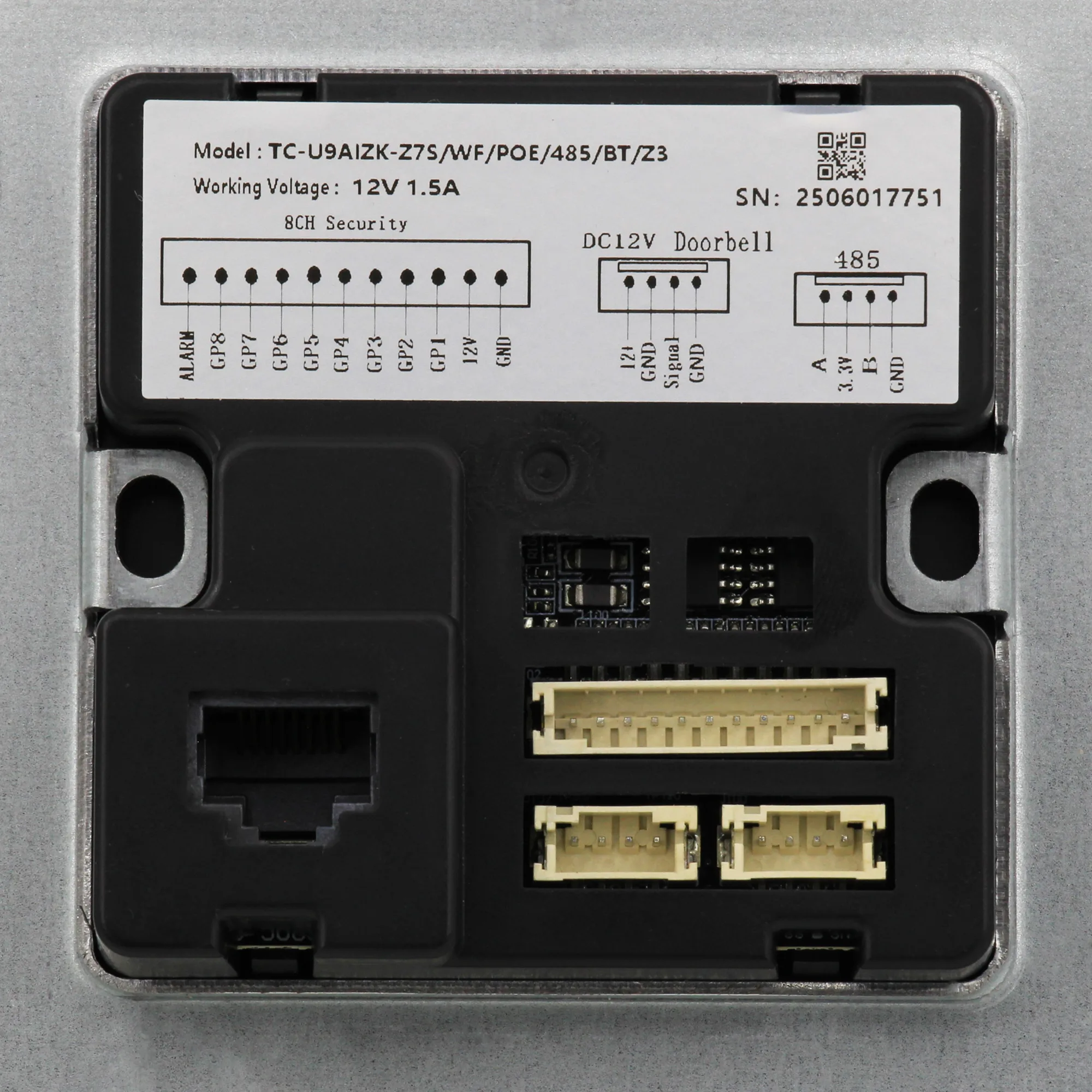 در بخش فنی، این مدل از پردازنده A133 و ۲ گیگابایت رم به همراه ۸ گیگابایت حافظه داخلی بهره میبرد که برای اجرای نرم افزار های خانه هوشمند و عملکرد آیفون تصویری کاملاً مناسب است. پشتیبانی از ارتباطات RJ45 (TCP/IP)، WiFi و Zigbee 3.0 امکان اتصال پایدار به طیف گستردهای از تجهیزات مانند روشنایی، سنسورها و سیستم های امنیتی را فراهم میکند. منبع تغذیه نیز از طریق DC 12V/1A یا PoE (IEEE802.3af) تأمین میشود. بدنه این پنل با ابعاد 167.2×106.9×10 میلی متر بسیار ظریف طراحی شده و در دمای منفی ۱۰ تا مثبت ۵۵ درجه سانتی گراد و رطوبت تا ۹۳ درصد عملکردی پایدار دارد. به این ترتیب، پنل داخلی TC-U9AIZK-Z7S راهکاری کامل، زیبا و اقتصادی برای ترکیب امنیت، کنترل هوشمند و طراحی مینیمال در فضای داخلی به شمار میرود.