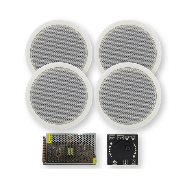 طراحی ویژه این سیستم که شامل منبع تغذیه مجزا است، به افزایش دوام و کاهش احتمال خرابی کمک میکند و در محیط هایی که سیستم بهطور مداوم در حال استفاده است، اهمیت فراوانی دارد. یکی از ویژگی های کلیدی این سیستم، مقاومت در برابر افزایش دما است که حتی در طولانی مدت نیز از داغ شدن آن جلوگیری میکند و این نه تنها از کاهش کیفیت صدا جلوگیری میکند، بلکه طول عمر دستگاه را هم افزایش میدهد. این پکیج برای افرادی که به دنبال صدای حرفهای و شفاف با طول عمر بالا هستند مناسب است، زیرا با طراحی حرفهای و کیفیت ساخت برتر، یک انتخاب عالی برای محیط های تجاری، اداری و فضاهای بزرگ به شمار میرود. این پکیج با قطر ۲۰ سانتیمتر شامل ۴ اسپیکر و آمپلیفایر ۴ کاناله به همراه منبع تغذیه است و صدایی استریو و بدون نویز ارائه میدهد. همچنین، با استفاده از بلوتوث نسخه ۵.۰، اتصال بیسیم پایدار و سریع را ارائه میدهد و در برابر افزایش و کاهش ولتاژ، اتصال کوتاه، جریان معکوس و دمای بالا محافظت میشود.